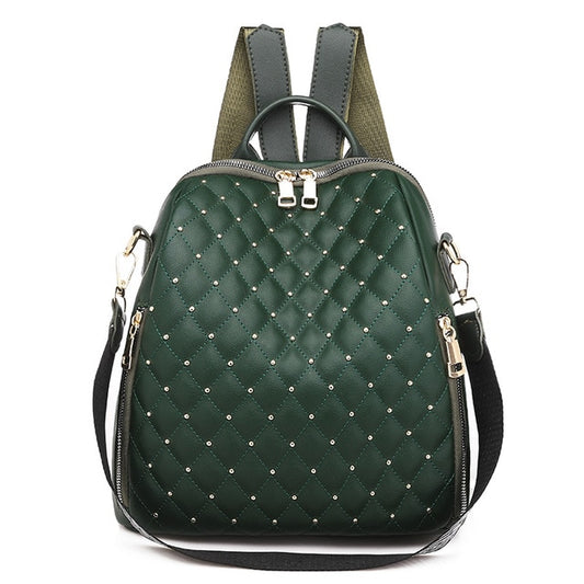 Luxury Designer Multifunction Riveted Soft PU Leather School Bag and Travel Backpack