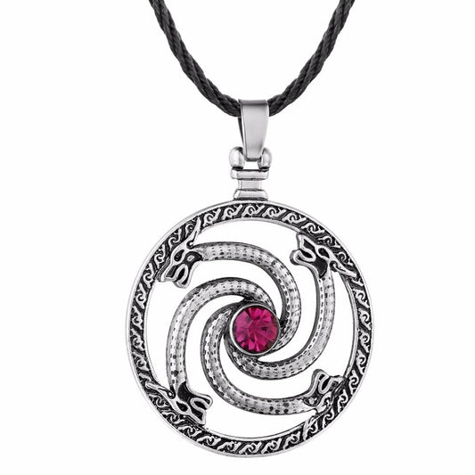 Rope Necklace with Dragon Knot Amulet and Red Stone