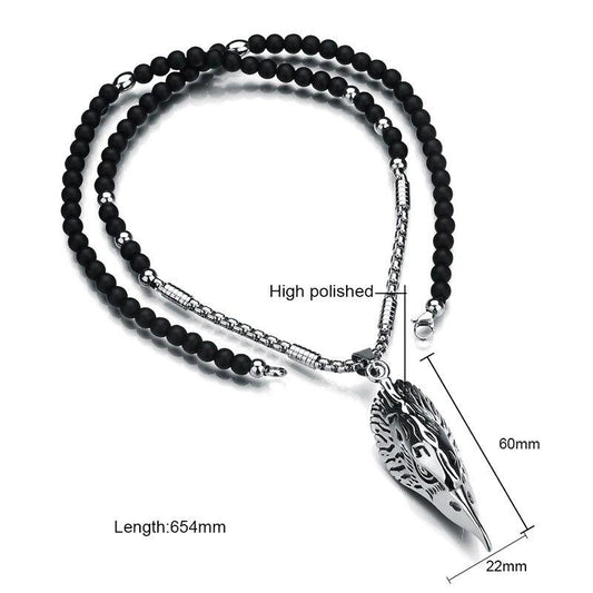 Silver Eagle Head Pendant with Chain and Agate Stone Necklace