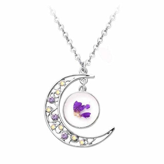 Silver Crystal Crescent Moon Cat Pendant Necklace