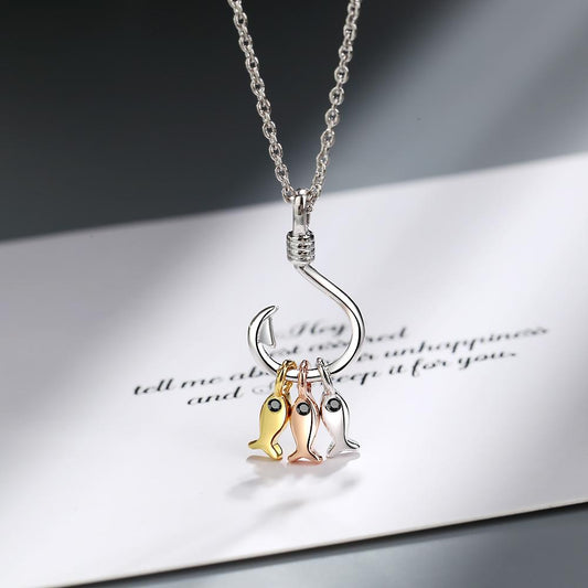 Silver Fish Hook with 3 Multicolor Fishes Pendant