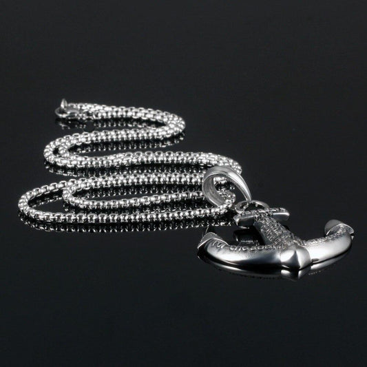 Silver Engraved Anchor Pendant and Chain Necklace