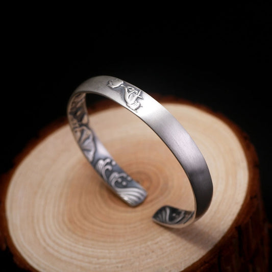 8mm Lotus 999 Genuine Silver Vintage Rock Open Cuff Bracelet
