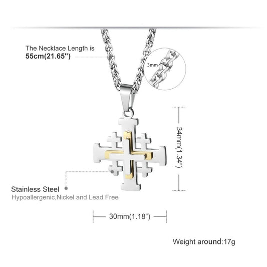 Stainless Steel Jerusalem Religious Cross Pendant Chain Templar Medieval Necklace