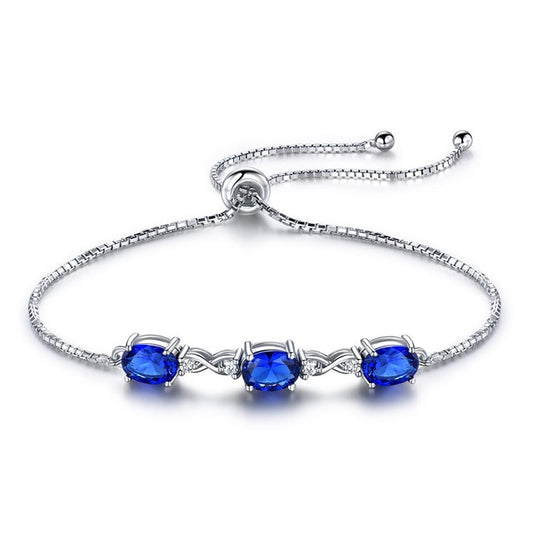 Tanzanite or Sapphire and Cubic Zirconia 925 Sterling Silver Adjustable Tennis Bracelet