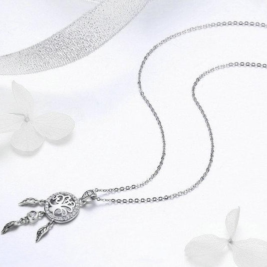 Tree of Life and Dreamcatcher Cubic Zirconia 925 Sterling Silver Vintage Pendant Necklace