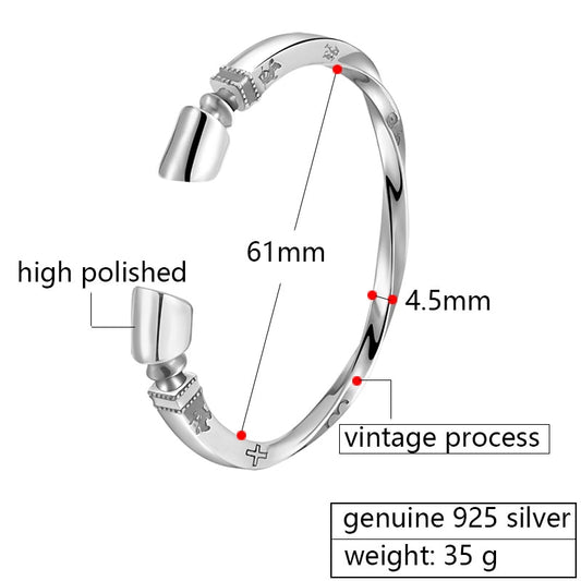 Viking 925 Sterling Silver Vintage Punk Rock Biker Twisted Open Bracelet