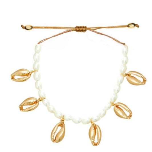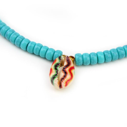 White and Blue Bead Choker with Painted Puka Shell Pendant