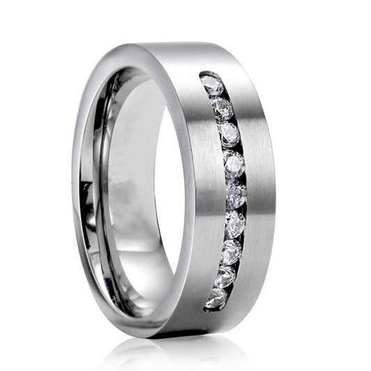 White Cubic Zirconia Stainless Steel Wedding Ring Set