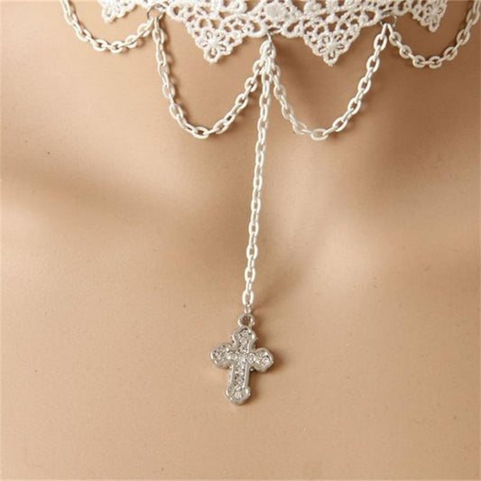 White Ceramic Circle and Round Stainless Steel Necklace & Earrings Jewelry Set