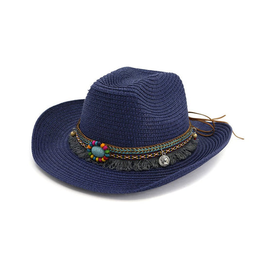 Woven Cattleman Cowboy Hat with Patterned Beaded Band