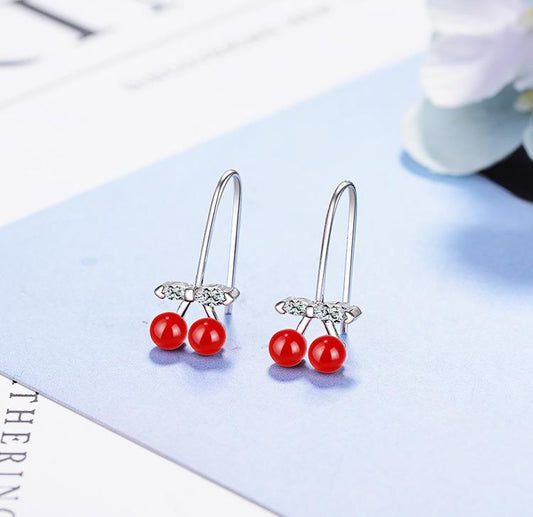 Zirconia Crystal Red Cherry Silver Stud Earrings