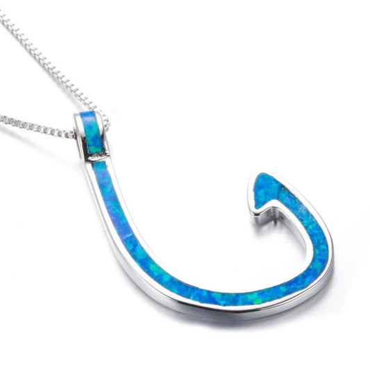925 Sterling Silver Blue Opal Fish Hook Pendant Necklace
