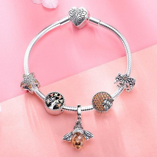 Bee and Daisy Flower 925 Sterling Silver Charm Bracelet
