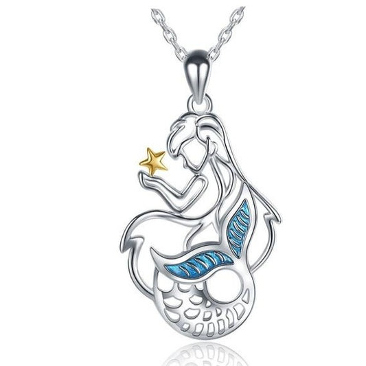 Beautiful Mermaid and Star 925 Sterling Silver Fashion Pendant Necklace
