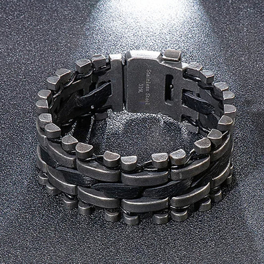 Dark Tone Biker Chain Bracelet Titanium Steel