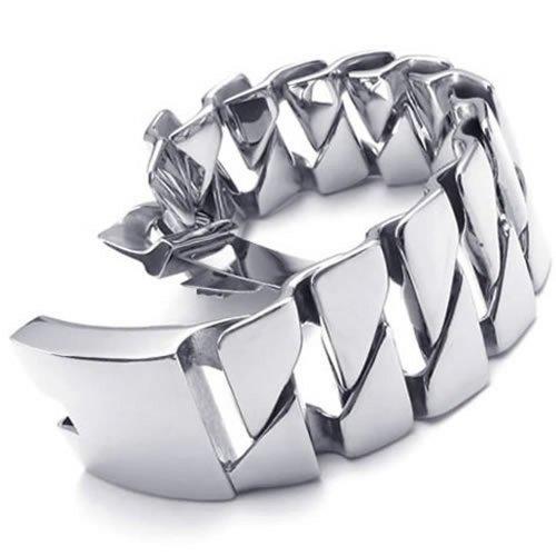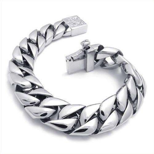 Men's Biker Silver Titanium Stainless Steel Rock Punk Style Link Cuff Personalized Cool Keel Big Chain Bracelet