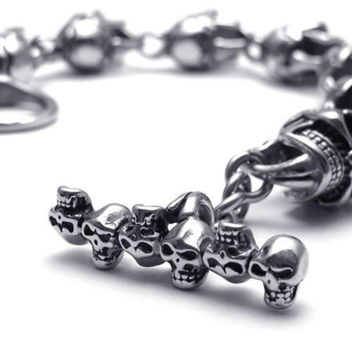 Heavy Large Stainless Steel Gothic Skull Biker Men Bracelet, Color Silver Black