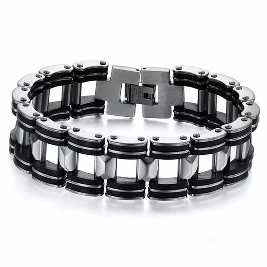Luxury Titanium Biker Chain Bracelet Silver & Black