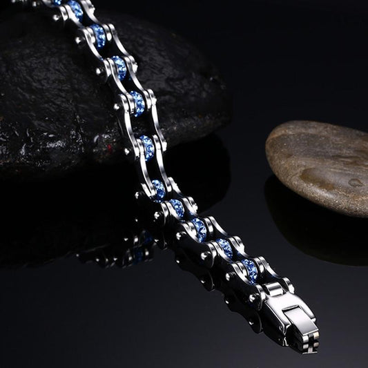 Silver & Sky Blue Crystal Motorcycle Chain Bracelet