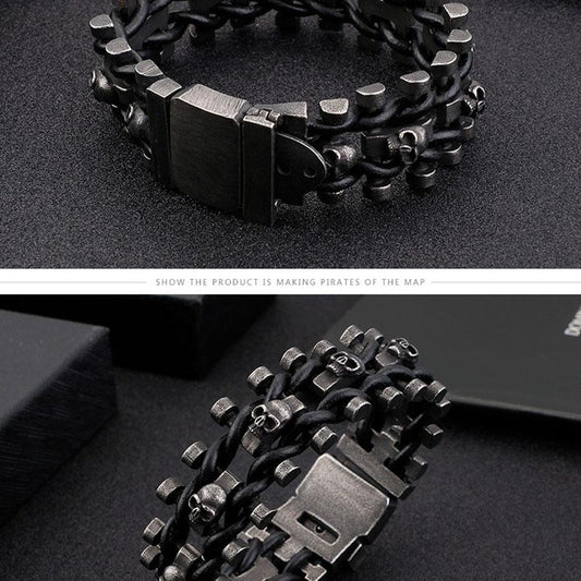 Stainless Steel Motorcycle Chain Antique Black Bracelet with Skulls