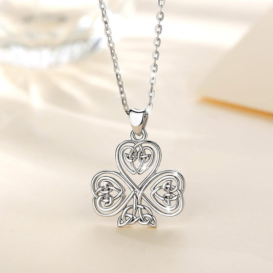 Celtic Shamrock 925 Sterling Silver Clover Knot Pendant Necklace