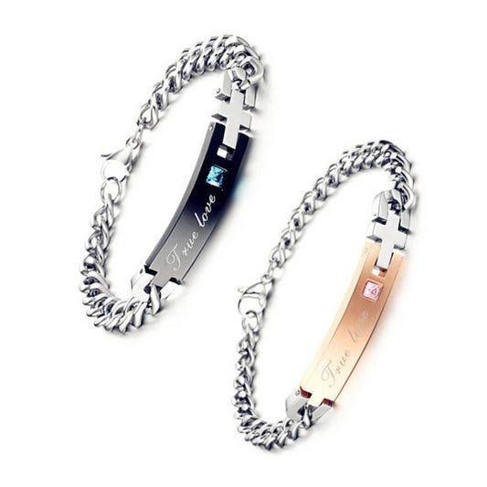 His & Hers Stainless Steel Bracelet Link Wrist CZ Curb Chain Couple Set