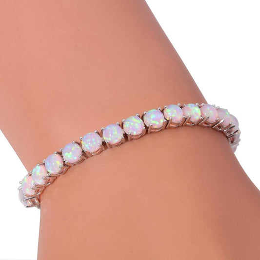 Natural Opal Gemstone Station Bracelet Chain Link Adjustable 925 Sterling Silver