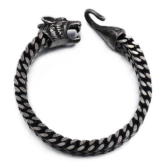 Antique Black Stainless Steel Viking Wolf Chain Bracelet