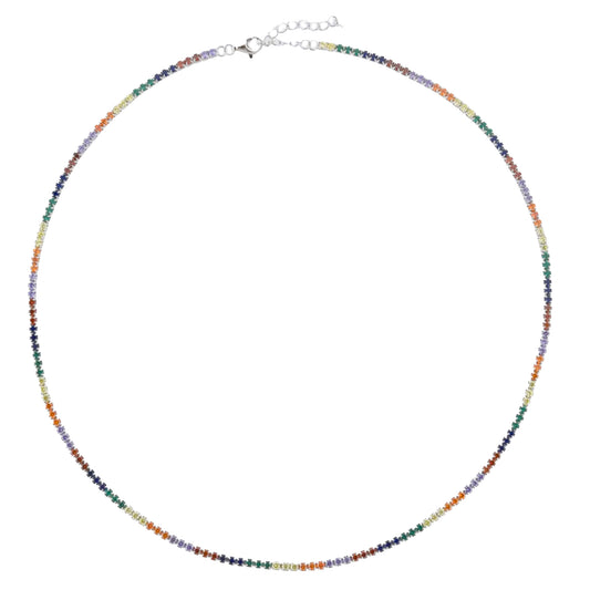 925 Sterling Silver Rainbow Zircon Pendant Necklace with Tennis Chain