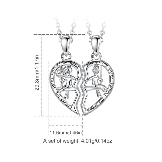 925 Sterling Silver BFF Sisters Heart Charm Necklaces Set