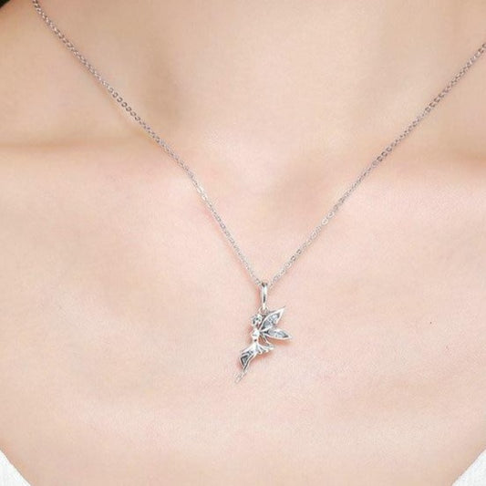 Flower Fairy Dangle Cubic Zirconia 925 Sterling Silver Fashion Pendant Necklace