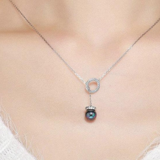 Lucky Circle and Black Pearl 925 Sterling Silver Fashion Pendant Necklace