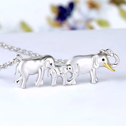 Lovely Elephants 925 Sterling Silver Fashion Pendant Necklace