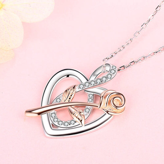 Infinity Cubic Zirconia, Heart, and Rose 925 Sterling Silver Fashion Pendant Necklace