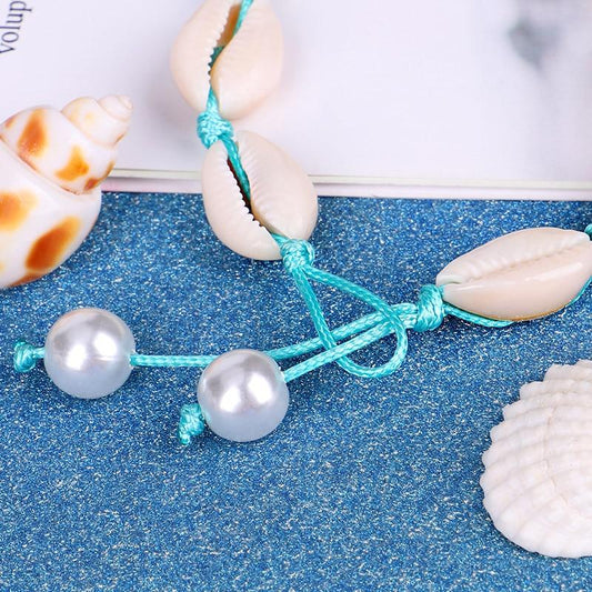 Rope Puka Shell Bracelet and Choker Set with Pearl End