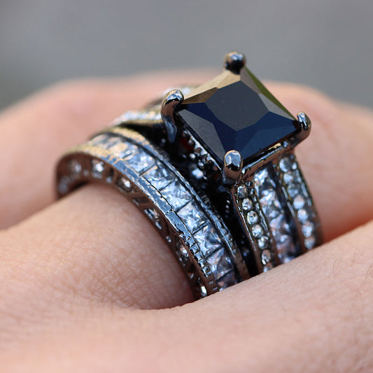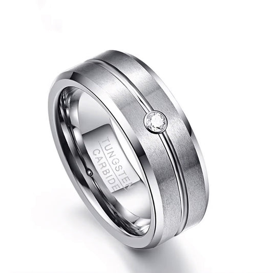 Cubic Zirconia and Rhinestone Tungsten Wedding Ring Set