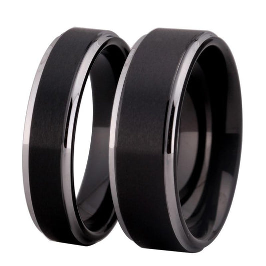 Matte Black with Silver Step Tungsten Wedding Ring Set