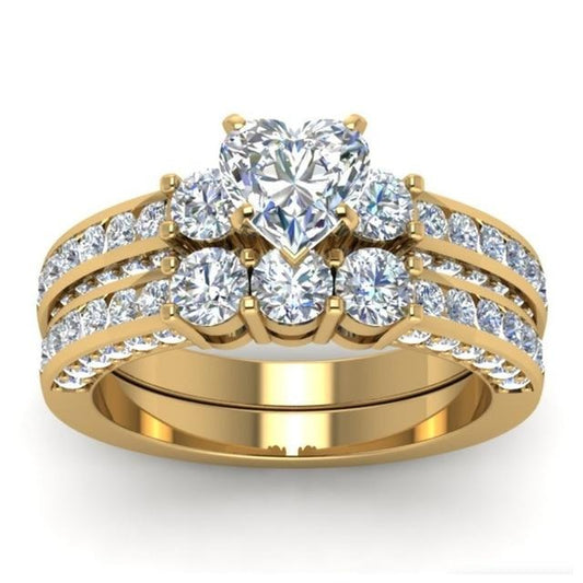 Gold Celtic Dragon Inlay and White Heart Cubic Zirconia Stainless Steel Wedding Ring Set
