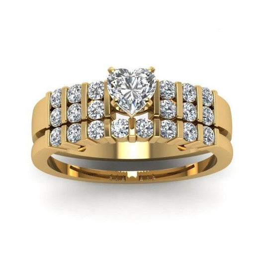 Gold Inlay and White Cubic Zirconia Stainless Steel Wedding Ring Set