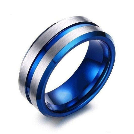 8mm Blue/Silver and Blue/White Rhinestone & Cubic Zirconia Stainless Steel Wedding Bands