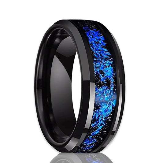 Black Tungsten Blue Foil Inlay Polished Edges Wedding Rings Couple Set