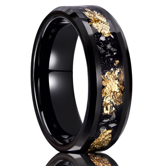 His and Her 6mm/8mm Black and Gold Foil Inlay Tungsten Couple Wedding Rings Set
