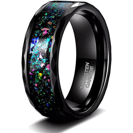 His & Her 4mm/8mm Opal Inlay Tungsten Carbide Wedding Bands Set Couple Rings