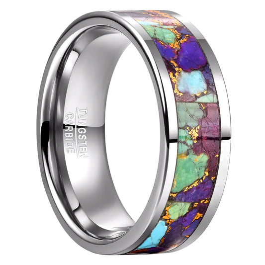 His and Her Tungsten Turquoise Pink Inlay Wedding Couple Rings Set