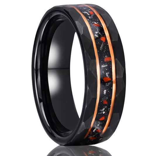 His & Her 6mm/8mm Red Meteorite Hammered Wedding Couple Rings Set