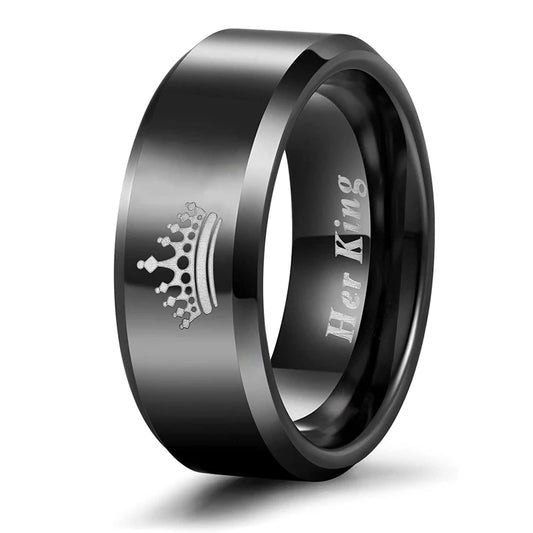 His and Her Tungsten with Engraved Crown King and Queen Couple Ring Set