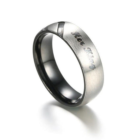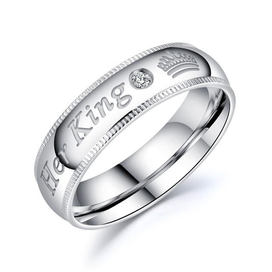 His and Her Silver Plated Stainless Steel with Crown and Round-Cut Cubic Zirconia Couple Ring