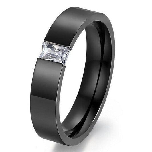 White/Black Cubic Zirconia Stainless Steel Wedding Ring Set