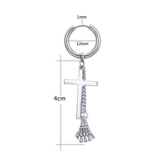 Skeleton Hand Punk Cross Hoop Earrings Unisex